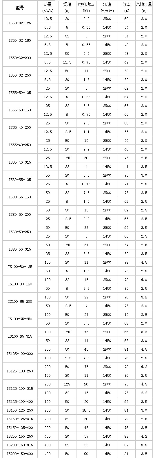 IS單級(jí)離心泵的(de)性能參數(shù):