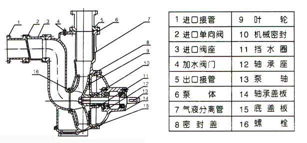 ZW型自吸(xi)式無堵(du)塞排污(wū)泵結構(gòu)圖: