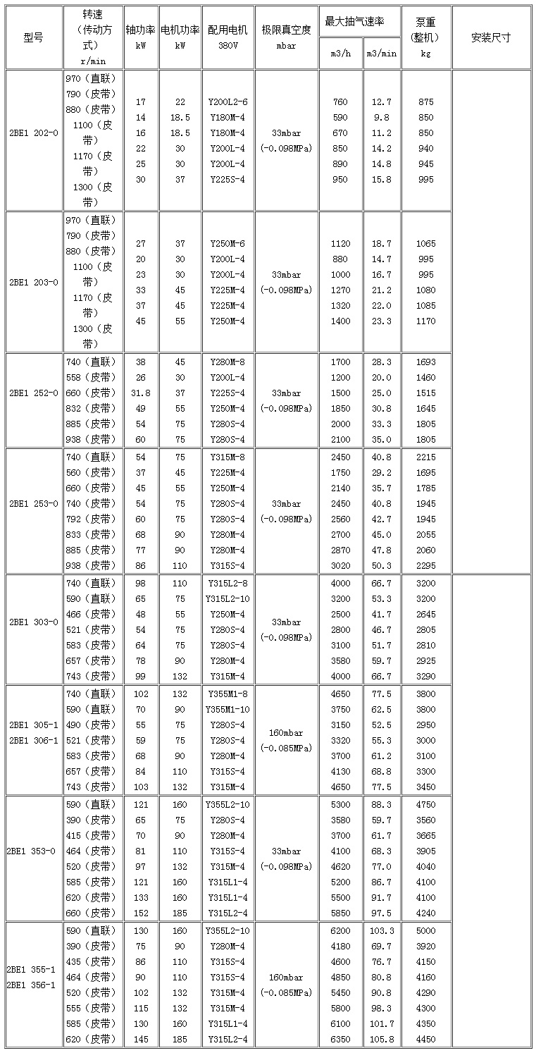 2BE系(xi)列水環式真(zhen)空泵技術參(cān)數: