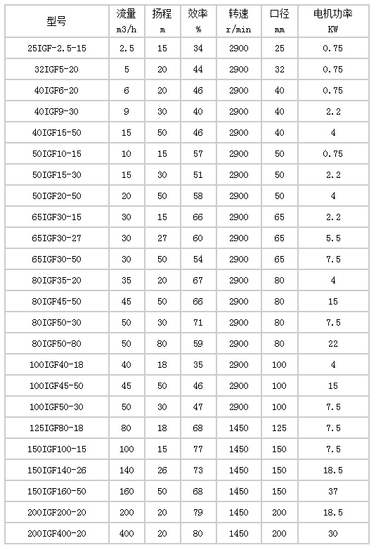 性(xing)能參數(shu): IGF型襯氟(fu)管道泵(beng)