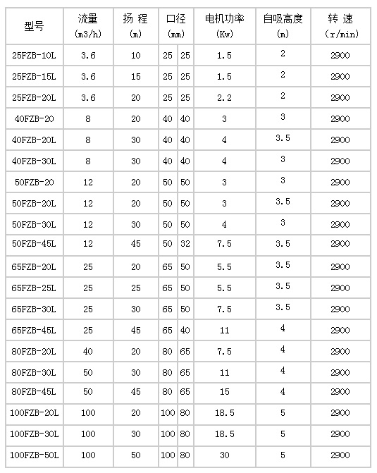 技(jì)術參數(shù): FZB型氟塑(sù)料自吸(xī)化工泵(bèng)